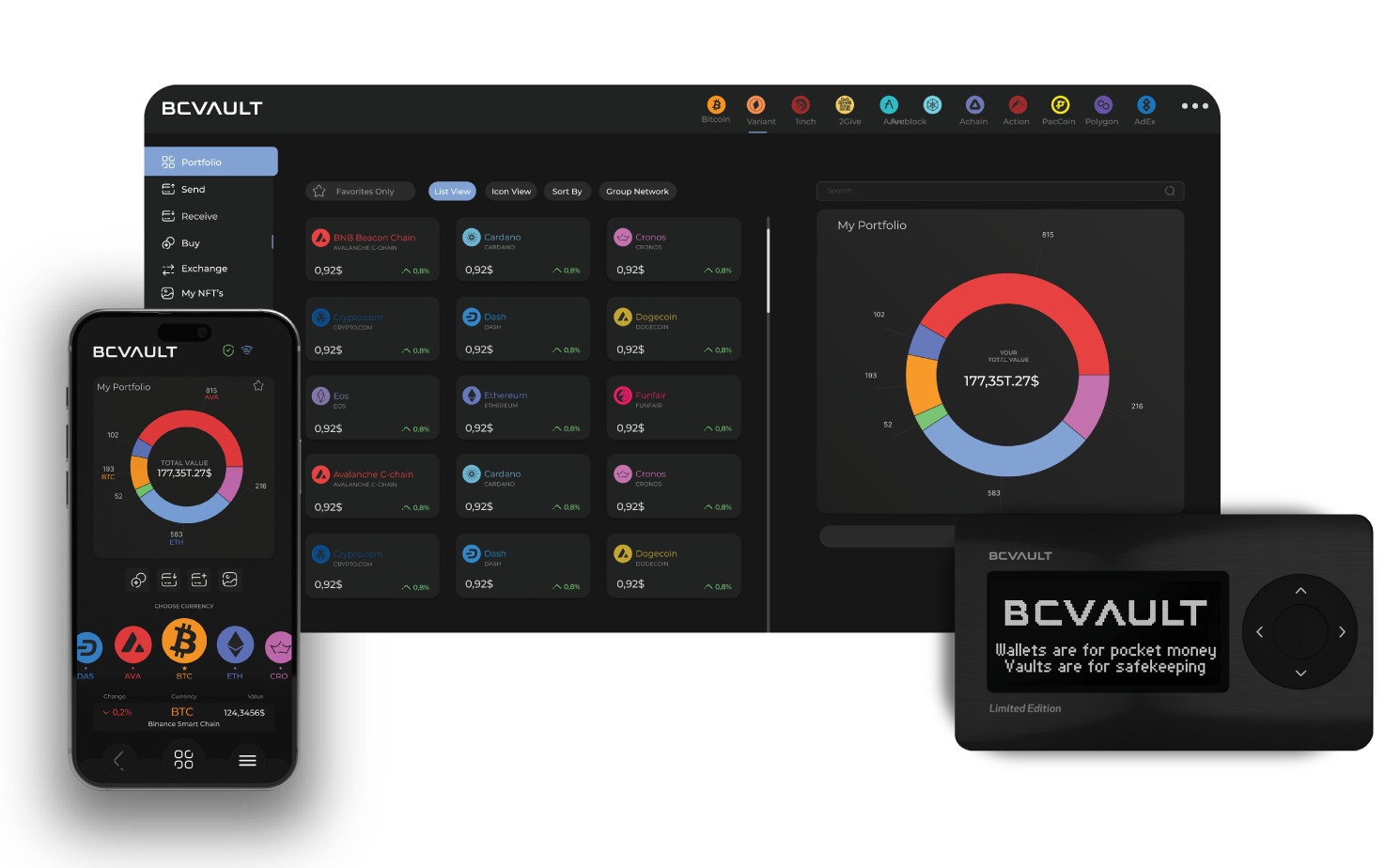 BC Vault desktop and mobile apps unlock their full power only when connected to your BC Vault hardware wallet. Without the device, the apps remain inaccessible — ensuring your crypto stays secure, always under your physical control.