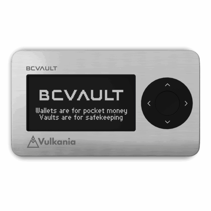 - The BC Vault Vulkania – branded Quicksilver hardware crypto vault